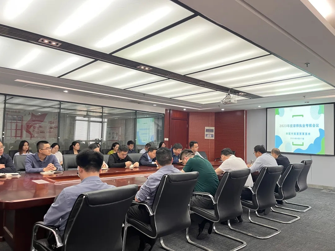 为规范律师事务所年度检查考核和律师执业年度考核工作,保证年检考核工作的顺利开展,深入贯彻落实郑州市司法局、郑州市律师协会联合下发的《关于开展2023年度律师事务所检查考核和律师执业年度考核工作的通知》,2024年4月17日下午,河南中锦律师事务所召开“2023年度律师执业考核”专项会议。